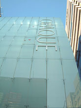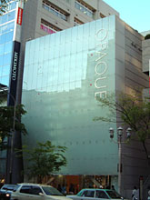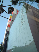 既存の建物をリニューアルしてできた建物です。ゆるやかなカーブを描いたエメラルドグリーンのガラス張りが綺麗です。夜になると当然ながらライトアップされ、ルイ・ヴィトン名古屋と並んで、こちらも大変綺麗です。シンプルな外観ながら、強烈なインパクトを受けますね。